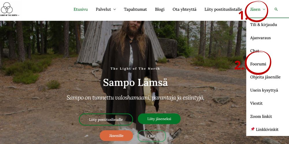 Pääset sisään sivuston ylävalikosta kohdasta ”Jäsen”.